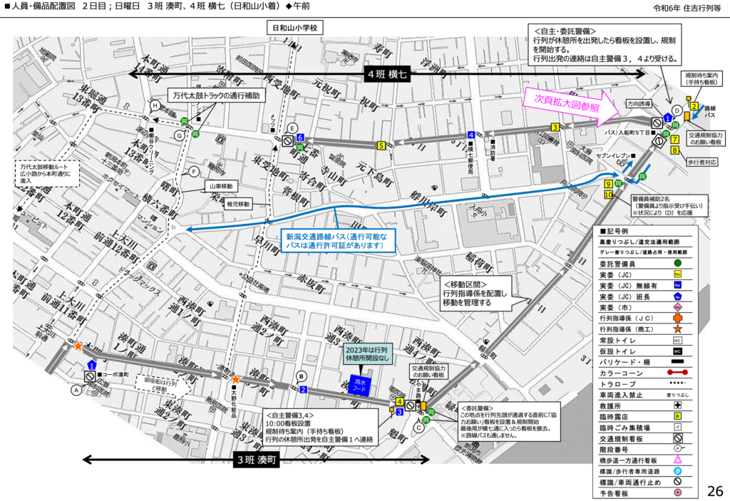 ・行列が休憩所を出発したら看板を設置し、規制を開始する。
